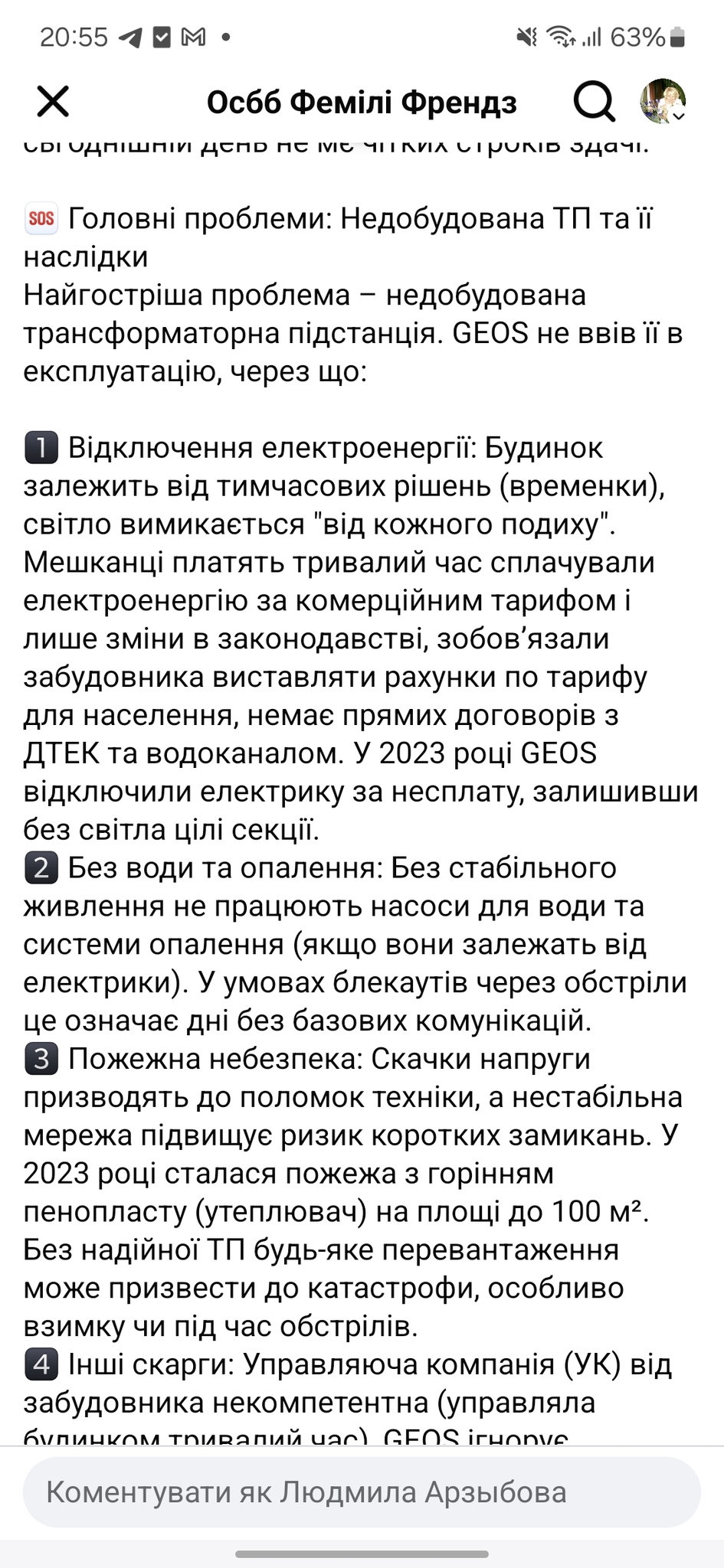 На жаль, Геос понизив клас ЖК: з рівня "комфорт" до рівня "економ". Чи то з причини відсутності проф навичків, чи з причини надмірної економії - невідомо. На сьогоднішній день будівництво 2-ї черги, що мало закінчитися у 2021 році, продовжується. Якість робіт та матеріалів, судячи з коментів, мешканців 1-ї черги та того, що видно "неозброєним оком" - невисока. До цього мінуса додається проблема з ТП. Побудувати та ввести в експлуатацію підстанцію досить коштовно. Також, жорстка економія вбачається в неохайсті, а точніше, в необладнанності прибудинкової території: відсутність зелених насаджень та навіть місць відведених для цього, відсутність місць для дозвілля дітей та дорослих, негативні відгуки про обслуговуючу організацію, яку мешканцям навязав Чи буде покращена ситуація після введенням в експлуатацію наступних будівельних черг - ?. Перевагою залишається вартість та цікава локація. До речі, рівень шуму як на мене досить прийнятний.